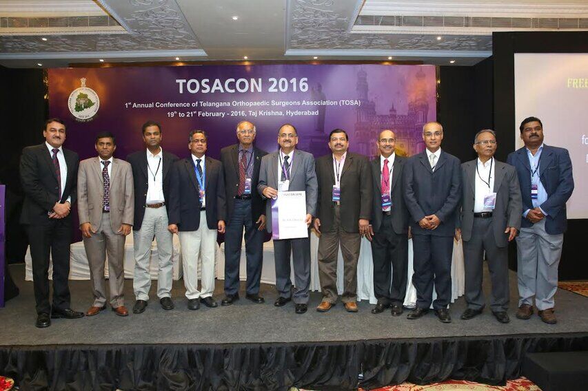 As the United Andhra Pradesh was divided into Telangana and Andhra state, a separate association for orthopaedic surgeon's of Telangana was inevitable. The decision to form a new association started in OSSAPCON at mahaboobnagar in 2014 but postponed in view of Ioacon being conducted by OSSAP in 2014. Ioacon 2014 was conducted by Dr Sreenivas Reddy organising Secretary and Dr PVCReddy, organising chairman in a excellent manner and won several laurels for Ossap. The final decision of formation of Telangana orthopaedic surgeon's association TOSA was taken in the executive body meeting of OSSAP at OSSAPCON 2015 at GUNTUR and ratified by general body in a peaceful manner and also that ossap will continue in the same fashion. All the members in ossap who belong to Telangana will be the members of TOSA and also that their membership will continue in OSSAP as previously . On 26.03.2015 ,All the leaders of Telangana district's met at Sailing club, Hyderabad and formed an adhoc body comprising of 21 members from all Telangana district's under the chairmanship of Dr Jairamchander Pingle with all District leaders of Telangana . The adhoc body formulated the constitution of TOSA over a series of meetings in the month of May . In the month of July, Dr Jairam chander Pingle, election commissioner, conducted elections for Tosa and office bearers were elected democratically. The results were announced in the adhoc committee meeting on 12.07.2015 At Hotel Amrutha castle, Hyderabad.